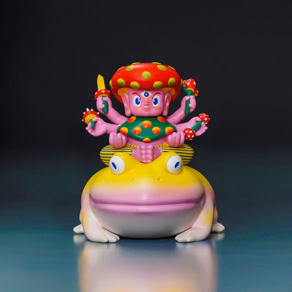 This figure is not only a tribute to the nostalgic era of sofubi but also a celebration of the mystical and powerful nature of fungi. It combines traditional craftsmanship with modern artistic vision, making it a unique addition to any collection.