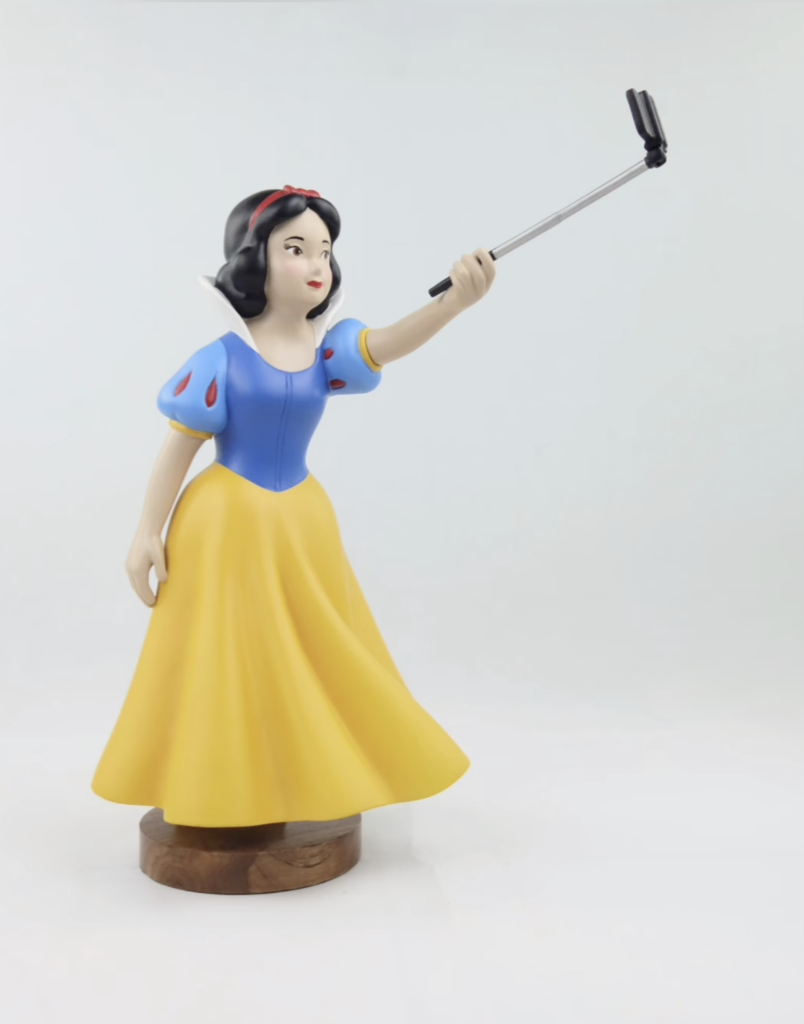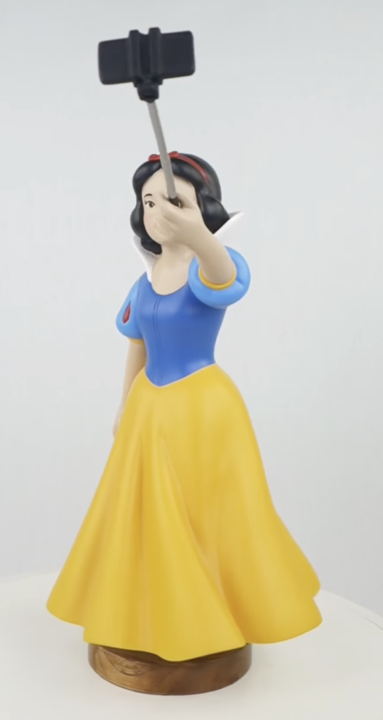 Indonesia rewrites the script to adapt to the modern day? Who knows all we know it made us giggle a little as once again HEARTLAB BALI X Hanh links up to present to you the The Enchanted Selfie Princess! symbolizing the contemporary obsession with self-image and social media. She might represent the pressure to present oneself in a certain way online, the desire for validation through likes and comments, or the illusion of perfection perpetuated by curated selfies. This interpretation could explore themes of identity, authenticity, and the impact of technology on society. You would think the 7 dwarfs would help her take some photos so a Princess wouldn’t have to do it all herself, HA.