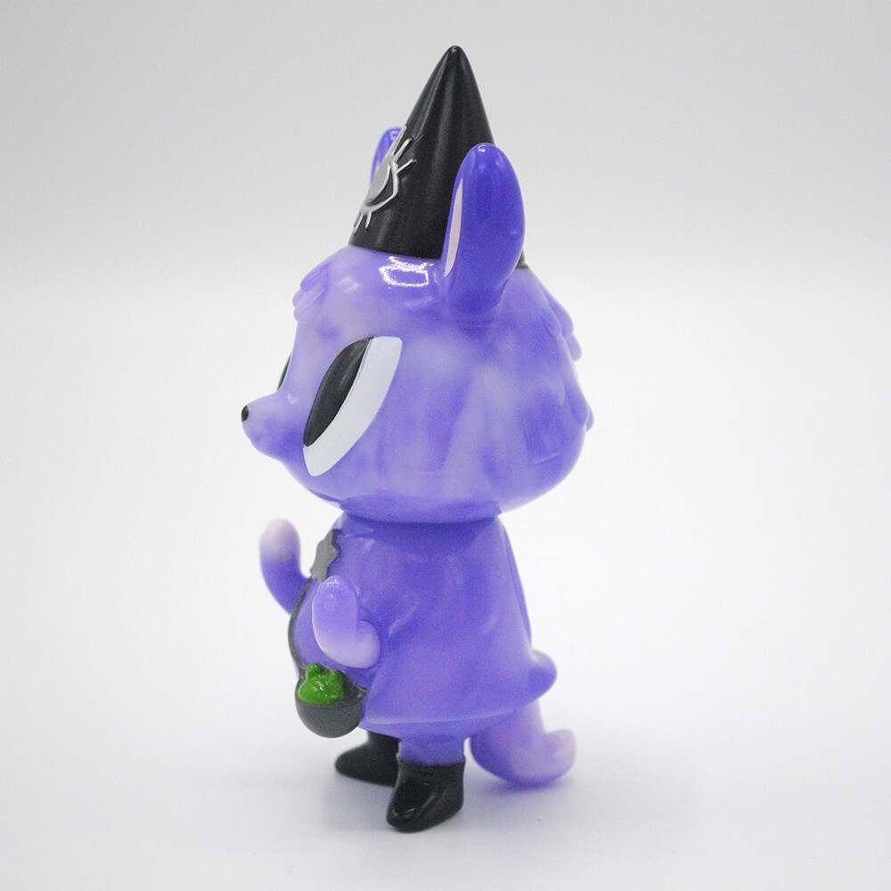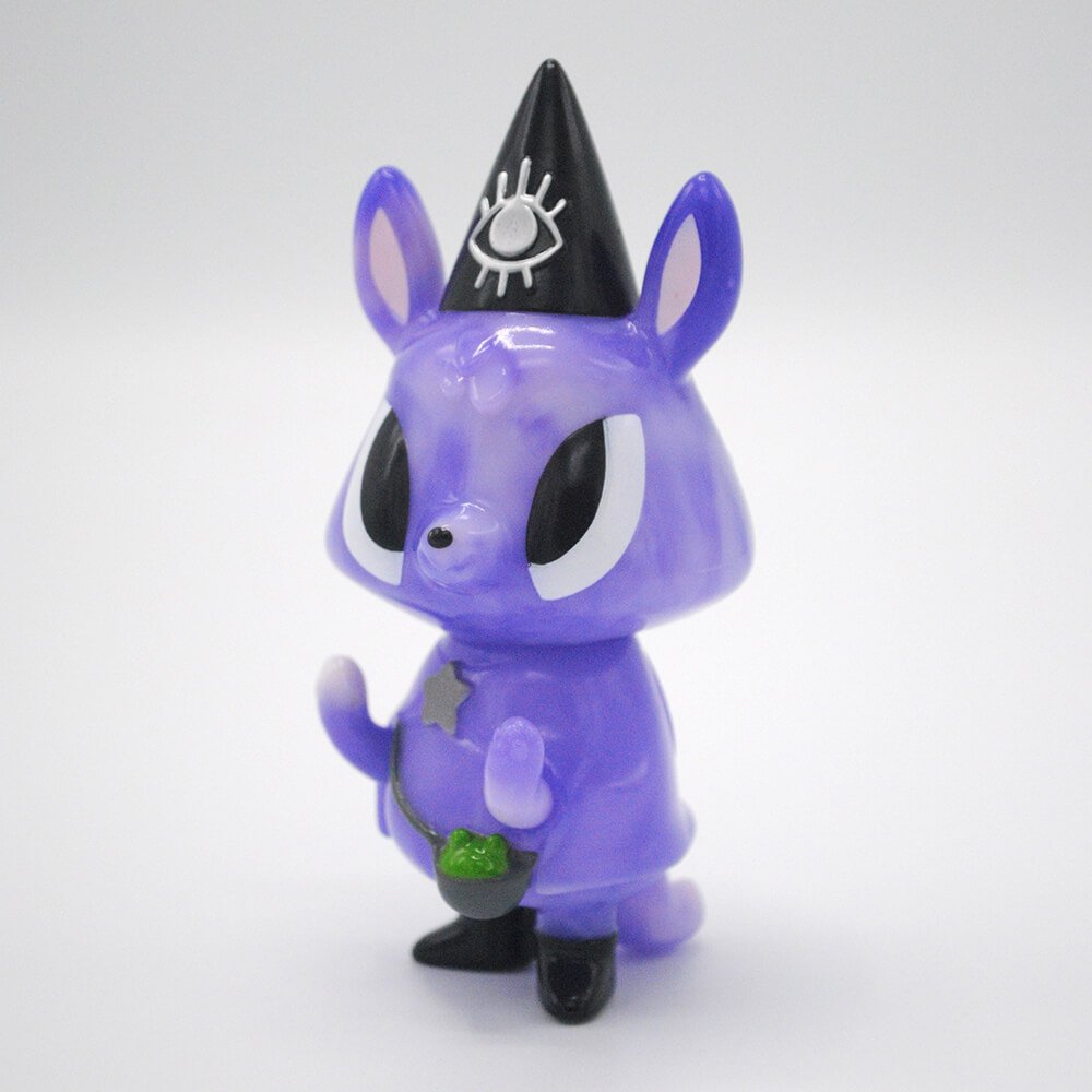 Nutterson III is a soft vinyl toy in our Purple-Marbled Aether Colorway. He measures 5″ tall and has an articulated head and paws that can be posed to cast all sorts of spells. His decorative star and all seeing eye are painted shimmery silver.