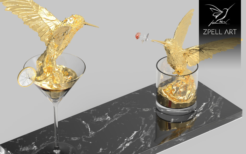 Last year, Thailands Nut Hongloy x ZPELL ART presented you all Goldfish Cocktail Sunrise x Ocean versions and now Nut is ready to carry on where he left off with a new two-piece set! for his love of nature and carrying on his signature style, Nut x ZPELL ART presents The Love Of Humming 24K gold edition. But wait, his Goldfish Cocktail gets the 24K treatment too. Sty classy people, HA. You won’t find these Goldfish at your local carnival/fairs! Shaken not sturred or your local nature reserve.