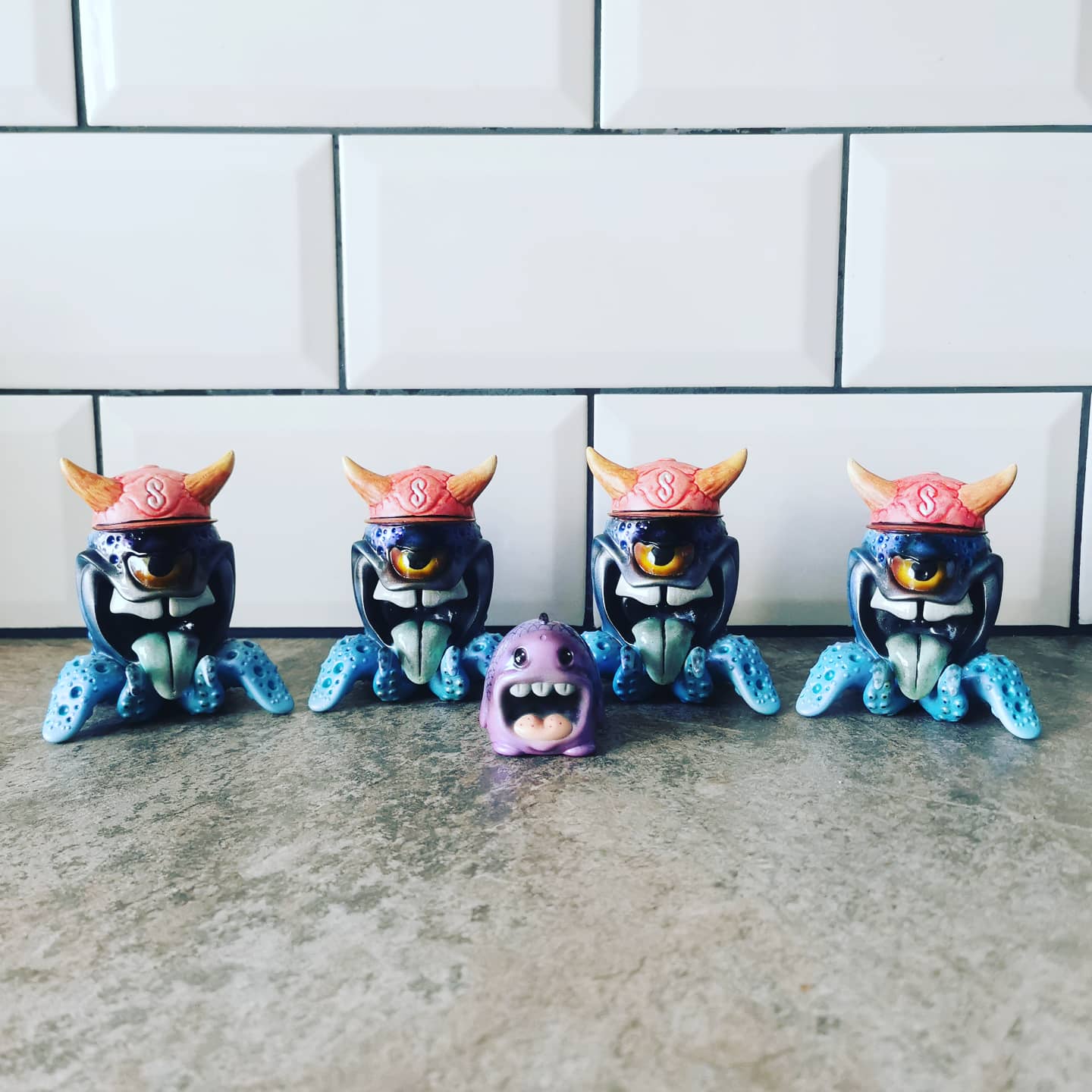 Well, today we bringth you news on the release of the Octo-Guy. This is the Skin Head edition, custom painted by Rydiablo. Taking the collab between @digitalhorseplay and @doctorplopz, Ry has airbrushed each of these resin 3D printed pieces.