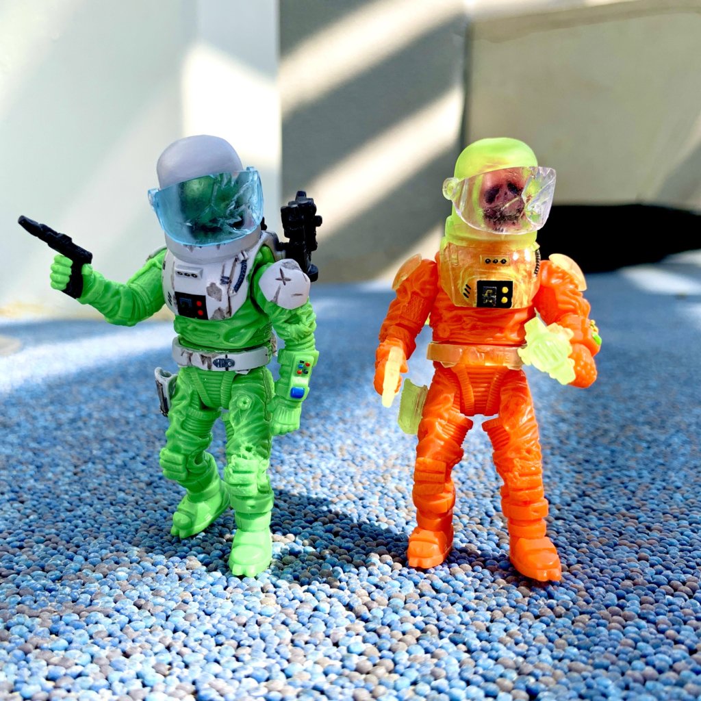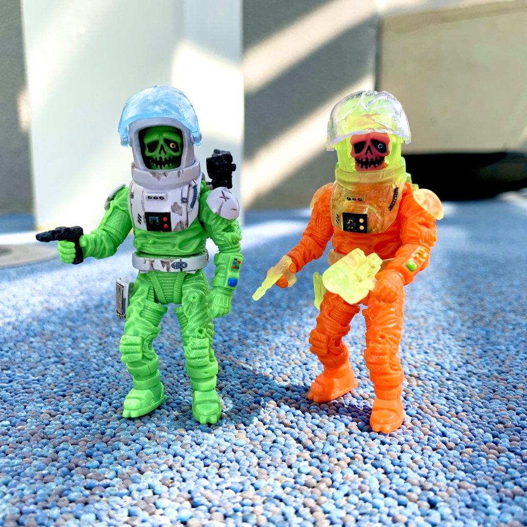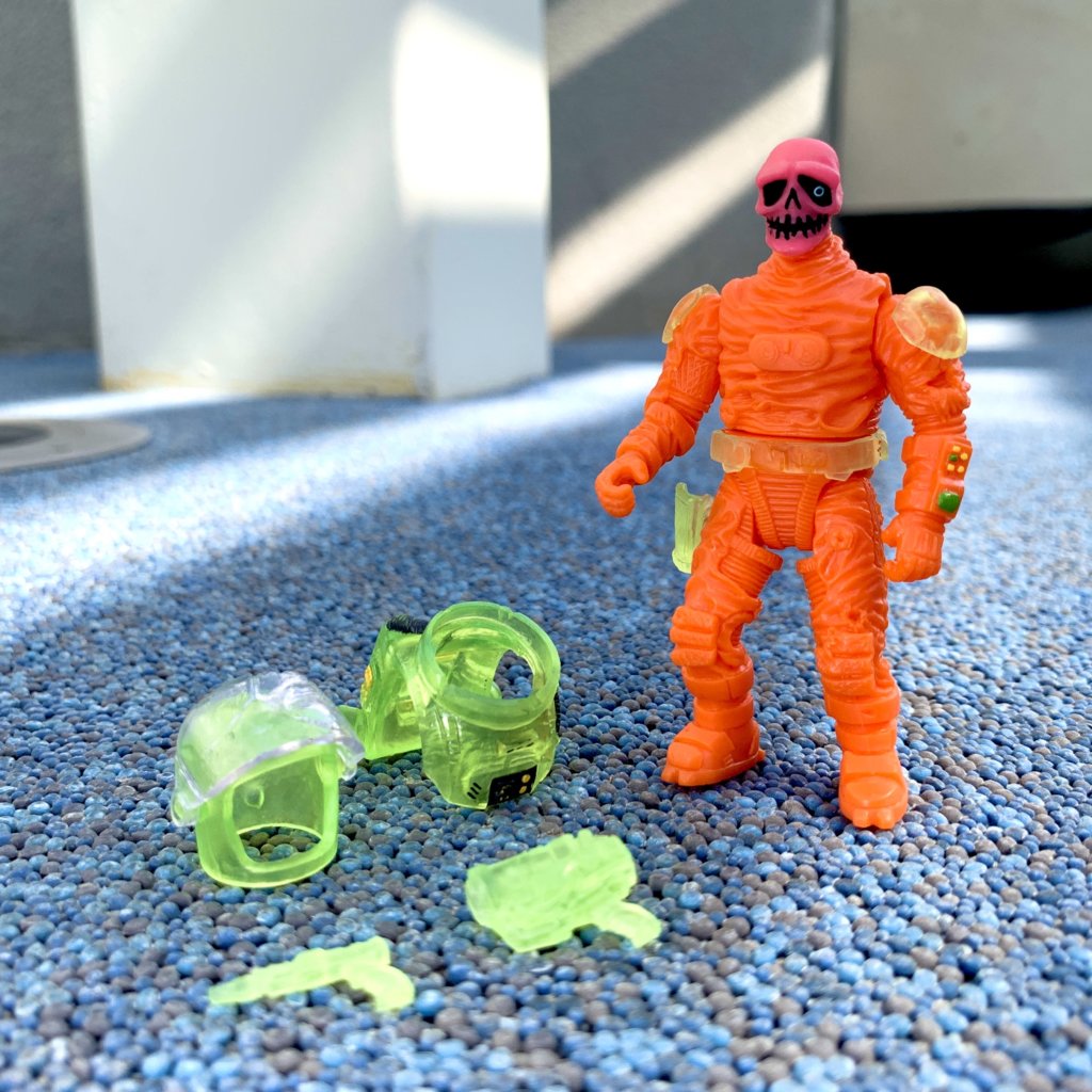 The spooky green is Tim’s main colour variant, and the awesome neon green/orange variant is a nod to the amazing toys of the 90s.
