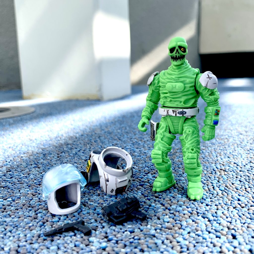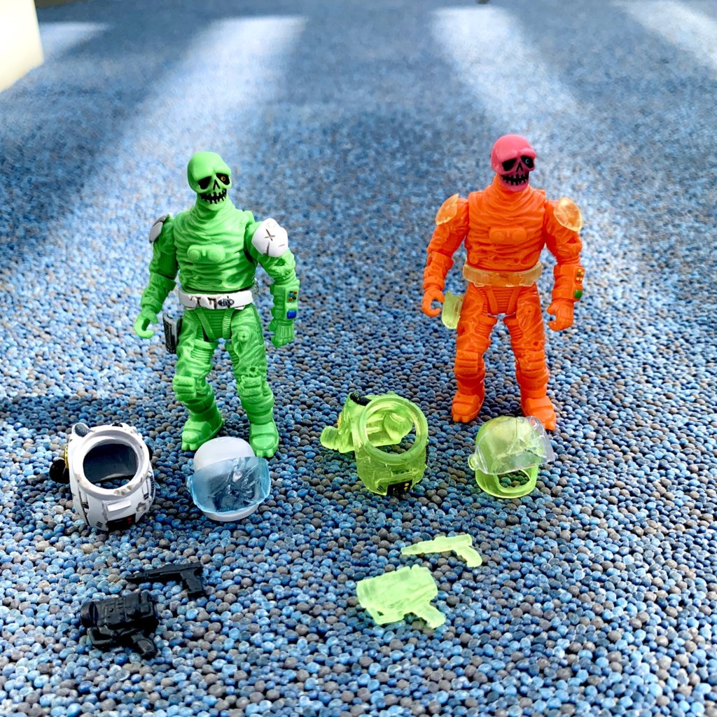 The spooky green is Tim’s main colour variant, and the awesome neon green/orange variant is a nod to the amazing toys of the 90s.