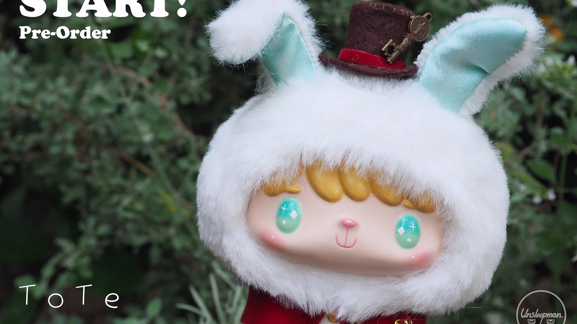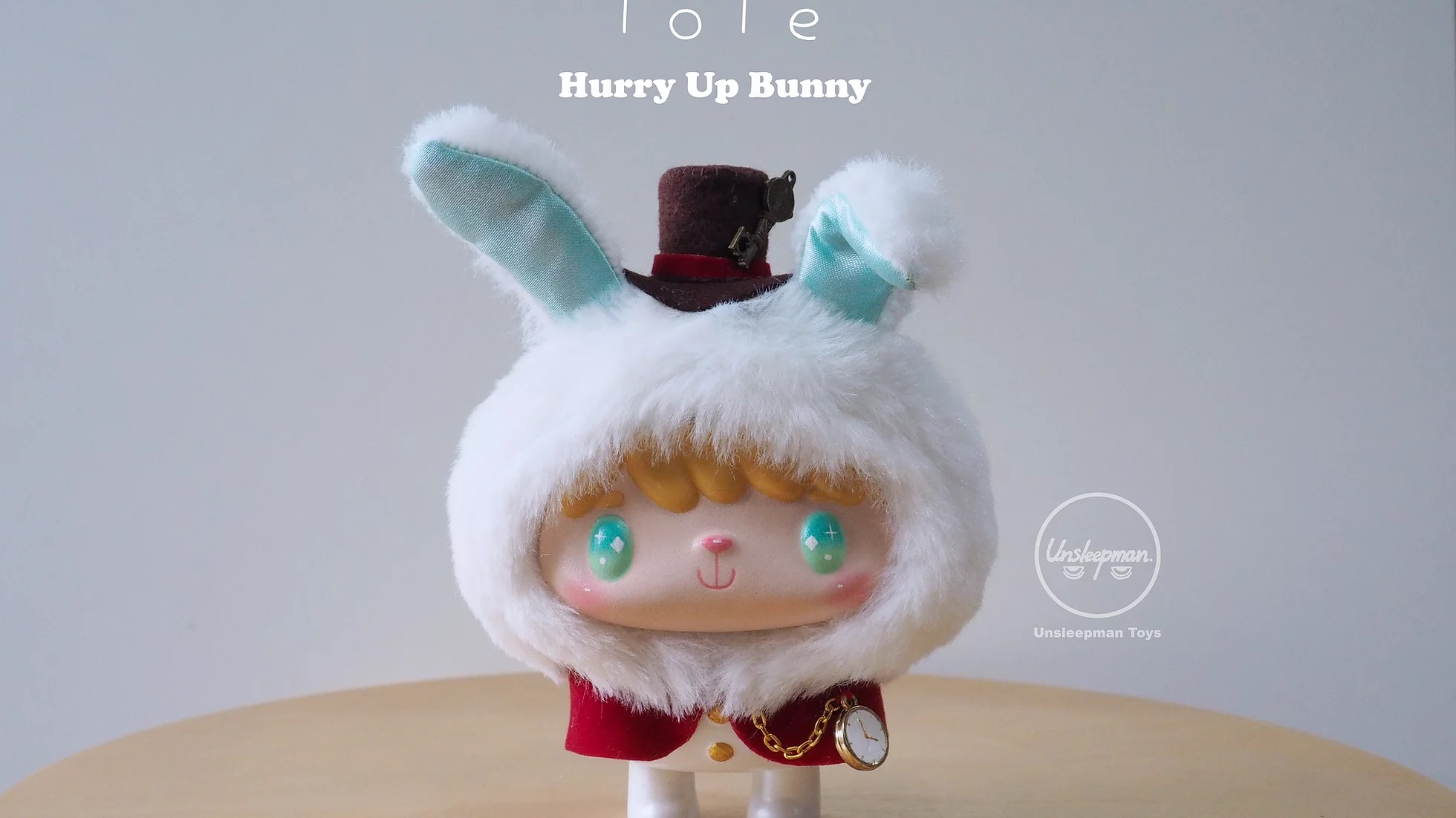 He was inspired by the White Rabbit in the story of Alice in Wonderland. Thailands Unsleepman Toys unleashing his little “TOTE” to find Alice, will he run out of time? Who knows all we know is ToTe Hurry Up Bunny edition is tall is 10 cm perfect to go down the rabbit hole, Ha. Featuring pearl white skin, yellow hair, and gradient mint green eyes, There is a spark in his eyes. Covered the head with faux fur and his ears are specially featuring bendable ears! plus his hat has the keys for unlocking secret tunnels into a wonderland.