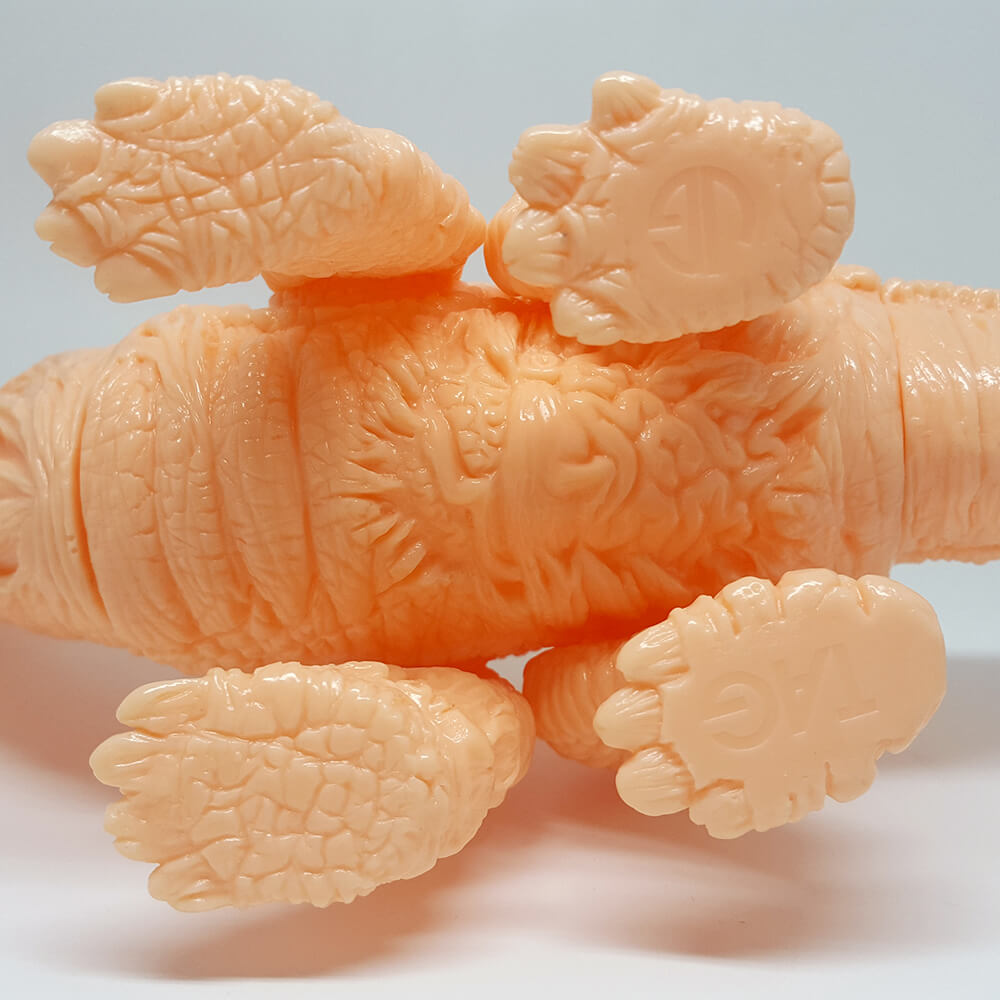 Toy Art Gallery and James Groman are back again with the beloved undead sauropod, the ‘Brachiosore’. This time around in an all new blank Keshi-inspired unpainted flesh vinyl cast.