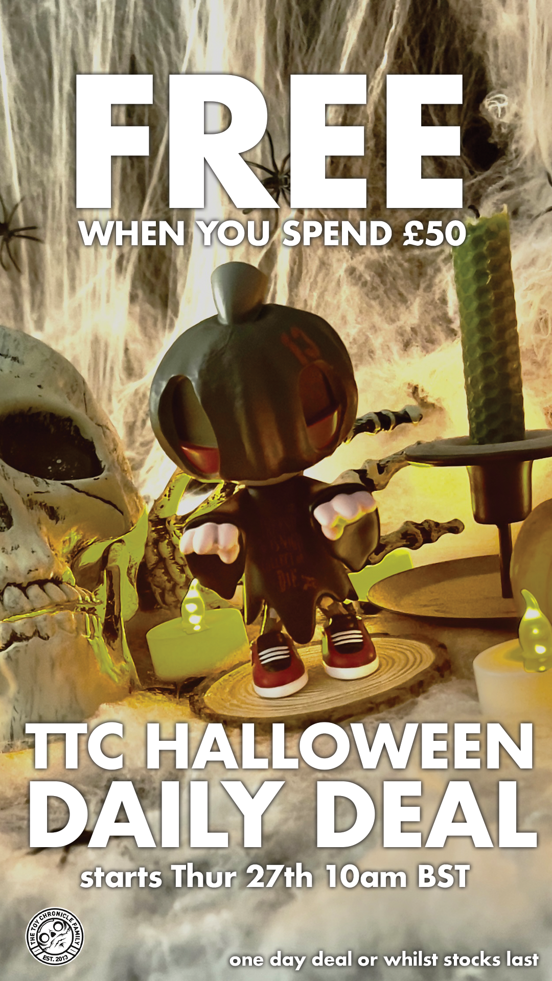 Days are tough at the minute, so we wanted to offer you guys some FREE stuff to help make you smile this Halloween season! During the week of Halloween (25th – 31st Oct 2022), we will be offering you a special TTC Halloween Daily Deal on the TTC Shop!