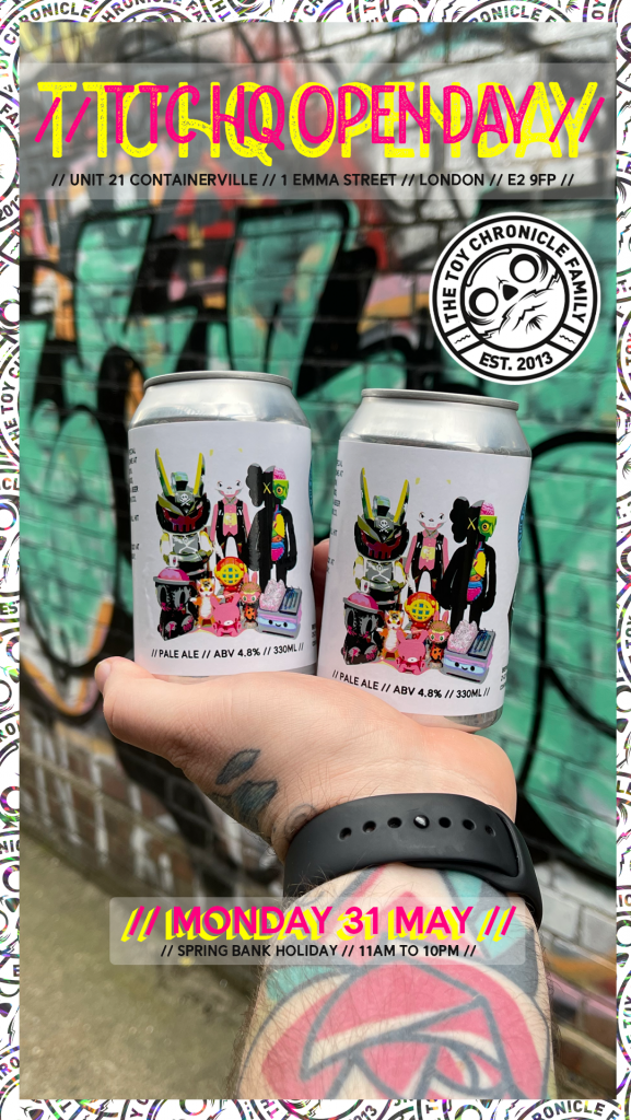 Come join us this coming Monday 31st May (Spring Bank Holiday in the UK). The weather looks banging (21degrees & sunshine). We will be opening the doors from 11am through to 10pm and we’ll have all your favourite designer toys, blind boxes, FREE BEER, pizza and treats too!