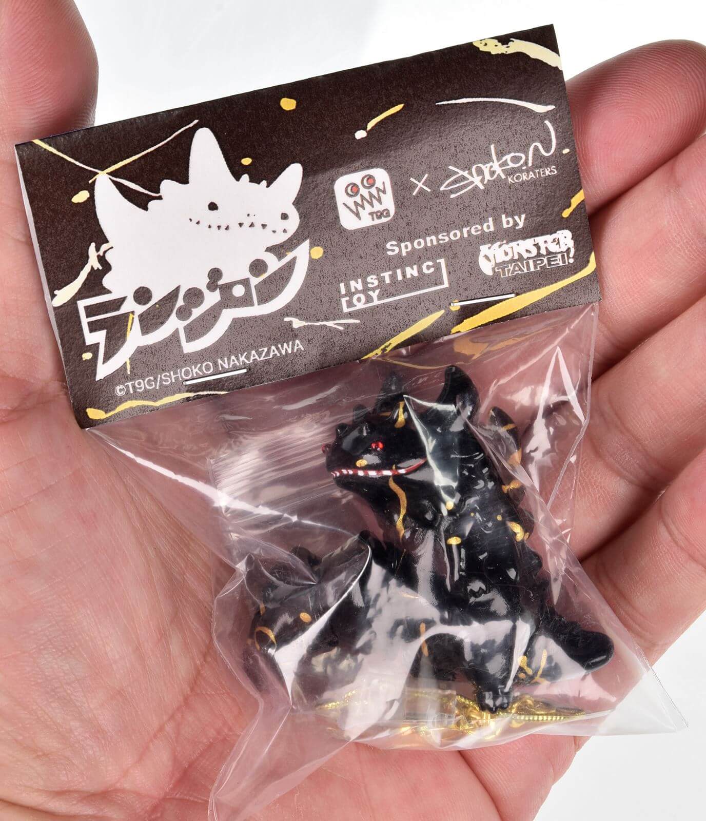 This year, we have decided to select the give-away gift from the “Mini Figure Series” by T9G × SHOKO NAKAZAWA × INSTINCTOY. The item is an exclusive colorway of “Mini Rangeron” which is a collaboration work between T9G and SHOKO NAKAZAWA!! As for this special exclusive color, we coated the whole body with a glossy black paint and applied gold splatter paint on the surface. It turned out to be a very chic and classy figure.