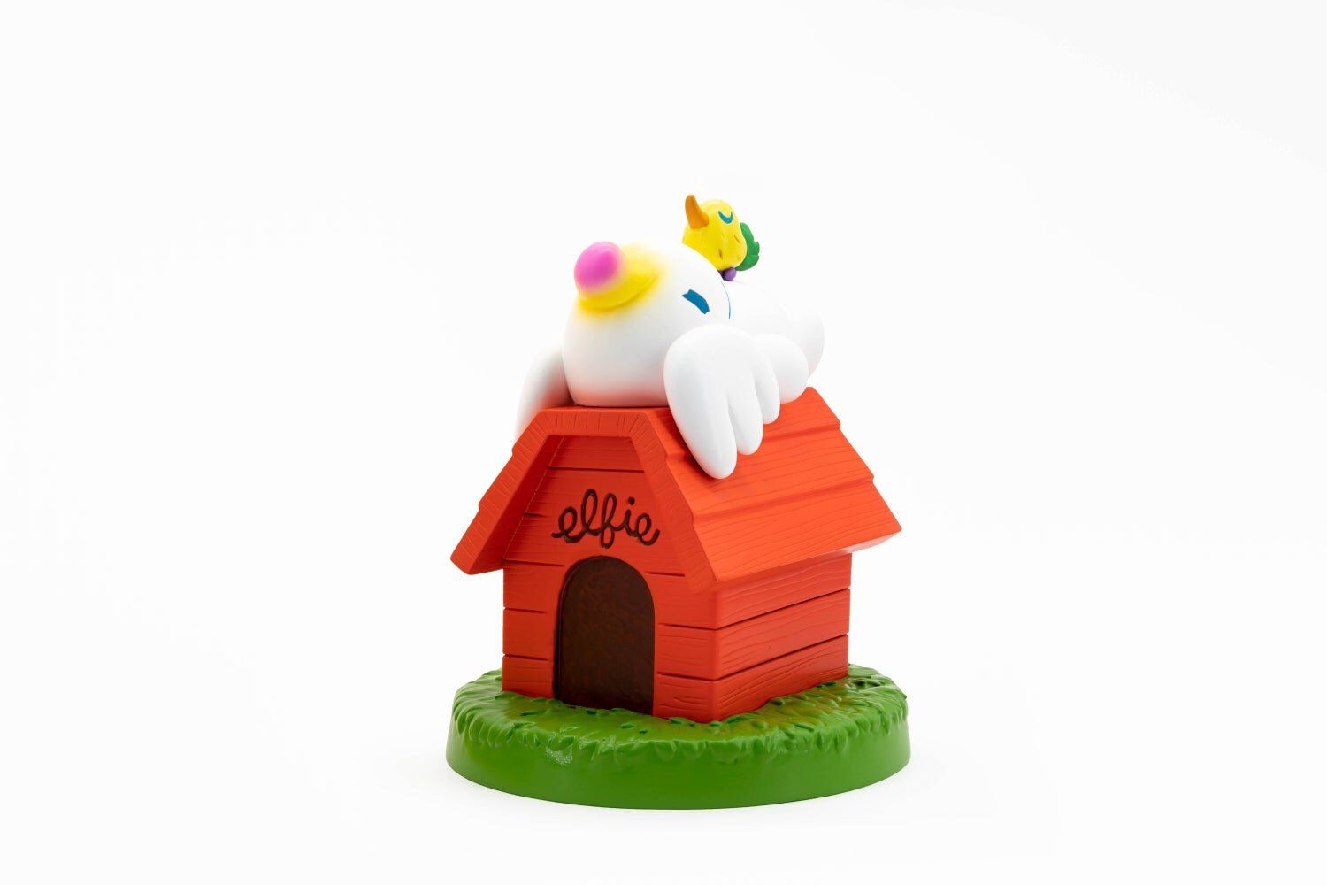 Unbox are thrilled to offer this very limited art piece designed by Thailand based artist Too Natthapong. Unbox has worked closely with Too on a variety of projects based on his ‘Elfie’ character. Now Too and Unbox Industries presents to you a new spin on his wonderful creations with Elfie opening a new chapter with a little homage to one classic cartoon! Do you recognise it? Can you spot little ‘Kewii’ keeping Elfie company?