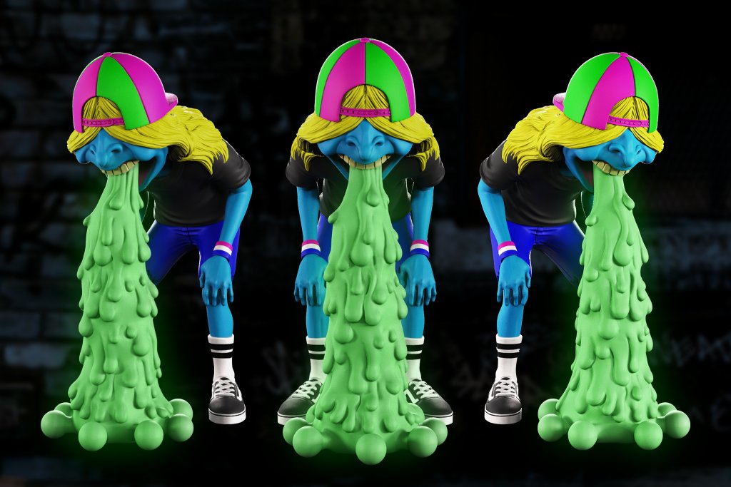 Measuring 8″ tall, the Vinyl Art Collectible features a gnarly glow in the dark puke and is limited to only 100 pieces worldwide HERE.