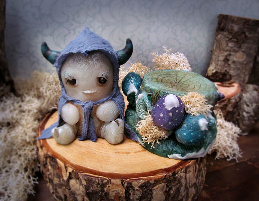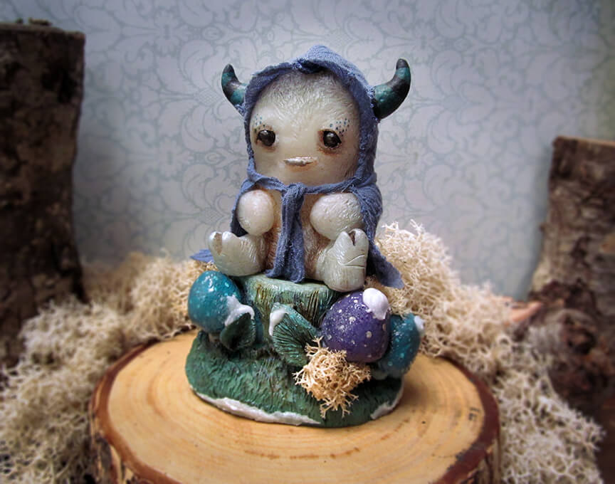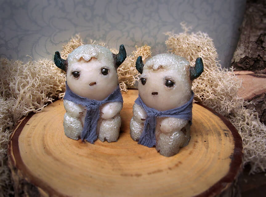 Its the new year and Yosiell Lorenzo Winter Wanderer Sicklings have come out of hiding, campfires keeping them warm and ready for new homes. This batch of icy Sicklings are only available during the month of January, each piece is an edition of 6 and they are numbered and signed. Painter, illustrator and sculptor Yosiell Lorenzo already making 2018 a great year for resin release with these little Winter Wanderer Sicklings series. Give them a new home before they disappear forever.