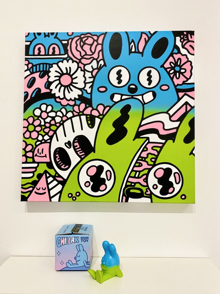 Red carpet all ironed out and ready for Chicago-based designer, illustrator and muralist, Blake Jones! Be it on a piece of paper or on a wall, Jones’ signature whimsical, anthropomorphic characters breathe a life of their own, crowding over one another as if they are jumping out from the surface into our world. Doors are all set to open for Blake Jones fans of new and old to enjoy the world of Blake Jones under one roof at Woot Bear Gallery. Blake Jones will be presenting to you hand-painted exclusive figures as well as drawings, paintings and MORE!