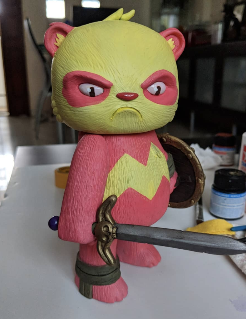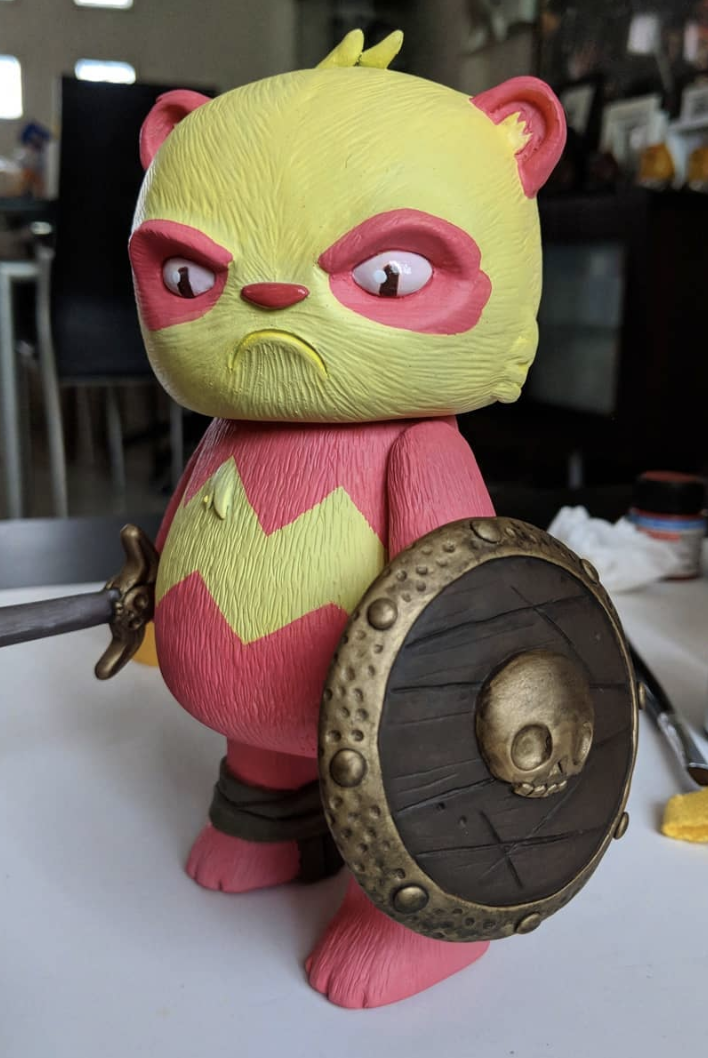 Oh lord! dreams do come true. Finally, we get to see another transition from illustration to an art collectable as “Xiong Mao” by the one and only The Chung aka David Chung gets the art toy treatment!!! We’ve already fallen in love with Davids POUTY PIG back in 2015 where gazed at the marvellous creation which has bags of character. “Xiong Mao” is on the way and Carlo Cacho aka Wetworks is painting a prototype as we speak. Sculpted by blackzartz and Wetworks, produced by Carlos, which is another vinyl figure under his belt will see Xiong Mao make an appearance this year STGCC. Who’s wants to take on the MIGHTY Xiong Mao! Check his grumpy face.