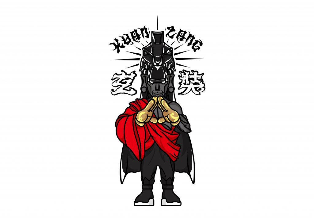 This project is the “EAST TO WEST” series of the third art figure – XuanZang, the style always keep HIP-HOP, XuanZang and rap this element together, for the role of interpretation, we keep some of the elements inherent, such as clothing, monk, etc., but have done a “fashion redesign process”, for the embodiment of rap is in the hand movement, we redesign a classic JAYZ gesture, on behalf of rap, while this A gesture as close to the feeling of Buddhism.