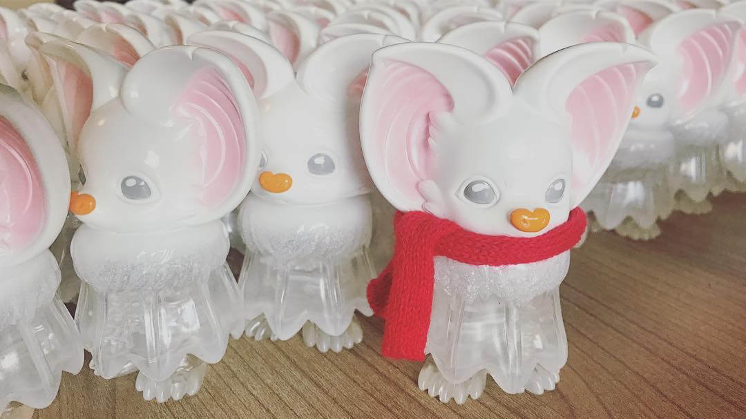 Yoyo Yeung of UNITOY is driving us batty again as our love for her Yoki has grown as Yoyo has just announced the snowman version of the cute Yoki for BINGO Toys store. In the festive spirit or not the Snowman version of Yoki is another must need to add to our Yoki collection, simply can’t get enough of this little bat. White semi-transparent tones along with those eyes, stare too long and you will fall in love forever.