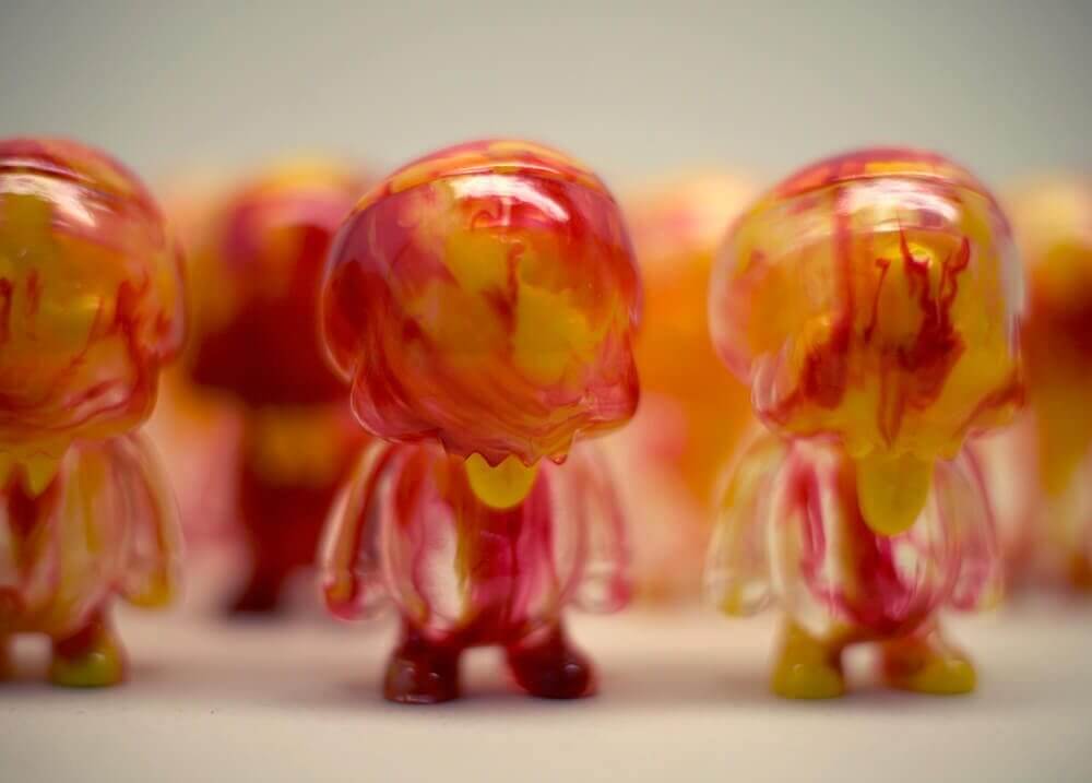 Here we go! good news from the Playge camp Ferg has released his “SEPSIS” and “ON THE MEND” YOUNG GOHST. Thats right, not one but two variations. Both versions are pretty fancy and it will be hard to choose which one to go for, unless you buy both of the little chaps. That red marble effect on “Sepsis” is freaking looks dope! then “ON THE MEND” clear body exposing the brainstem and hand painted eyes is freaking cool. decisions decisions.