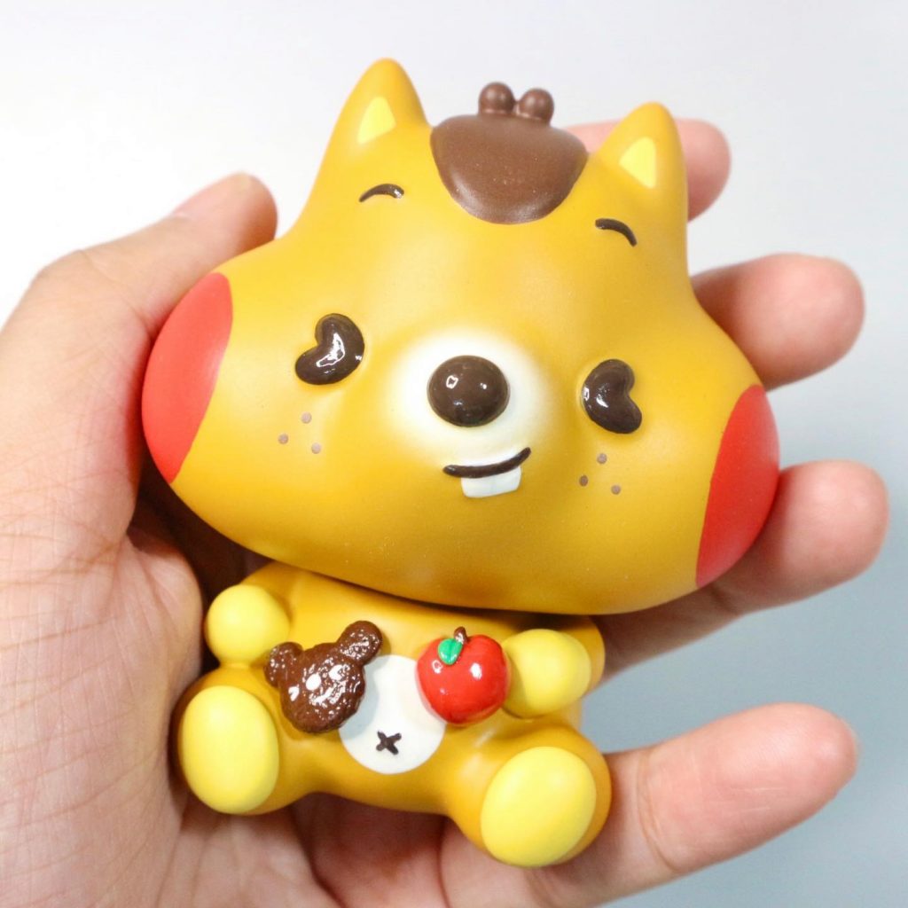 The Toy Chronicle artist spotlight artist Oraya Laddaklom, finally has the time to take a short break from the endless customs to concentrate on her own IP. Thailand based artist/customizer Oraya Laddaklom aka Lookplu8 “Little Squirrel” is back! slightly chunkier from the lockdown but we won’t judge as Yui Kuma looks adorable. As you can see from the video below, Yui is a head turner! who can resist the treats that Yui brings and those heart-shaped eyes?
