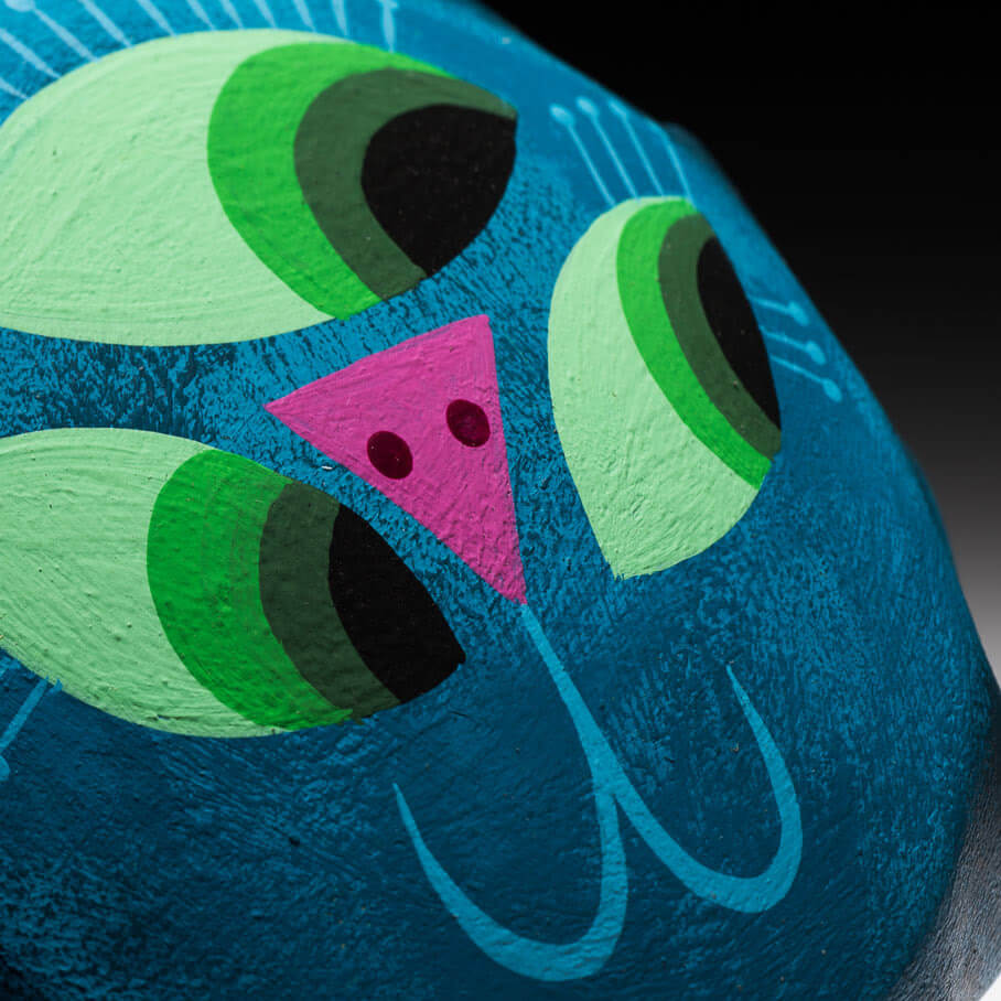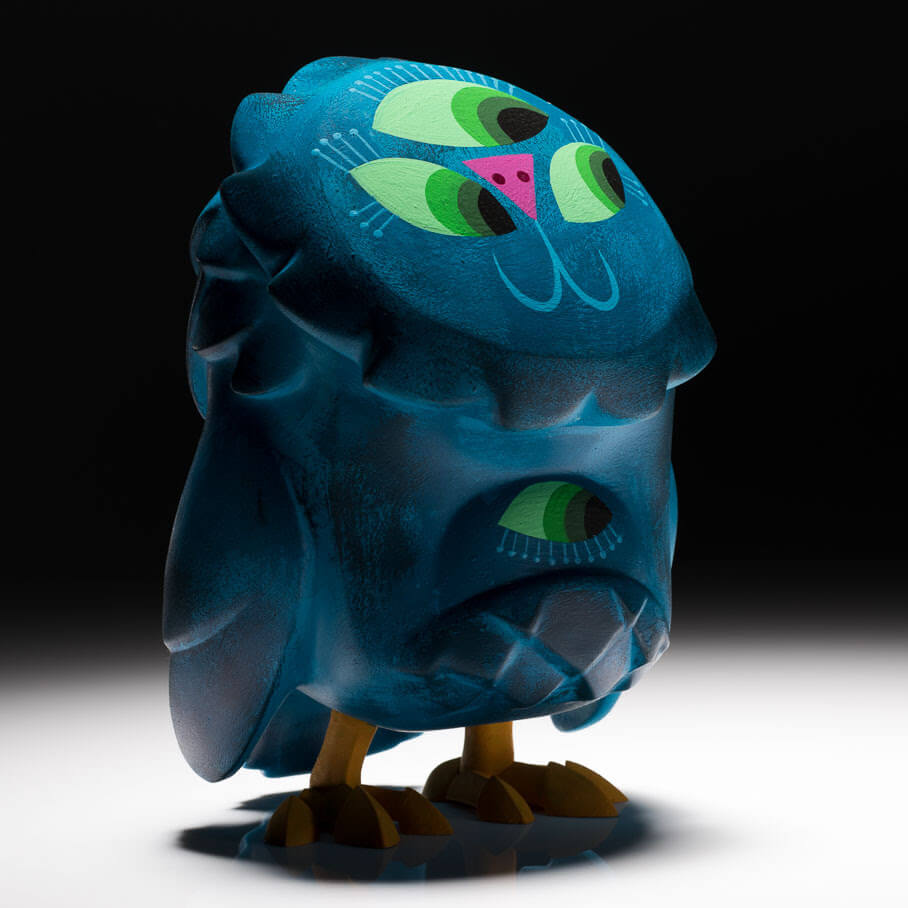 First exhibited at this year’s Thailand Toy Expo, omen – hypnosis will lull you into a state of unsettling tranquility. Limited to just 10 pieces, each figure is designed and hand-painted by Amanda Visell. Invite this mischievous omen into your home, but beware of her powers. With three eyes on her face and one on her belly, omen – hypnosis always sleeps with one eye open.