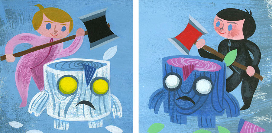 ZigZag can barely catch his breath. I used to be a tree, he remembers. He stops running, plants his feet in the ground and reaches his arms to the sky. I can become a tree again, he thinks, but the child’s laughter is louder now. It is the only thing he hears.
