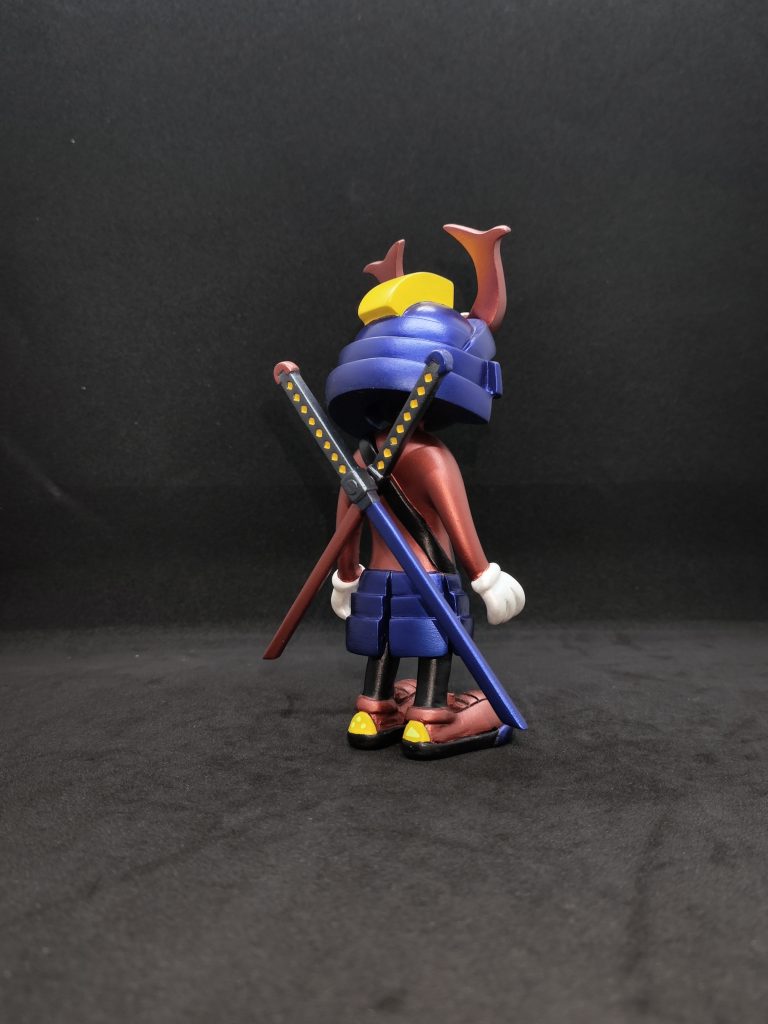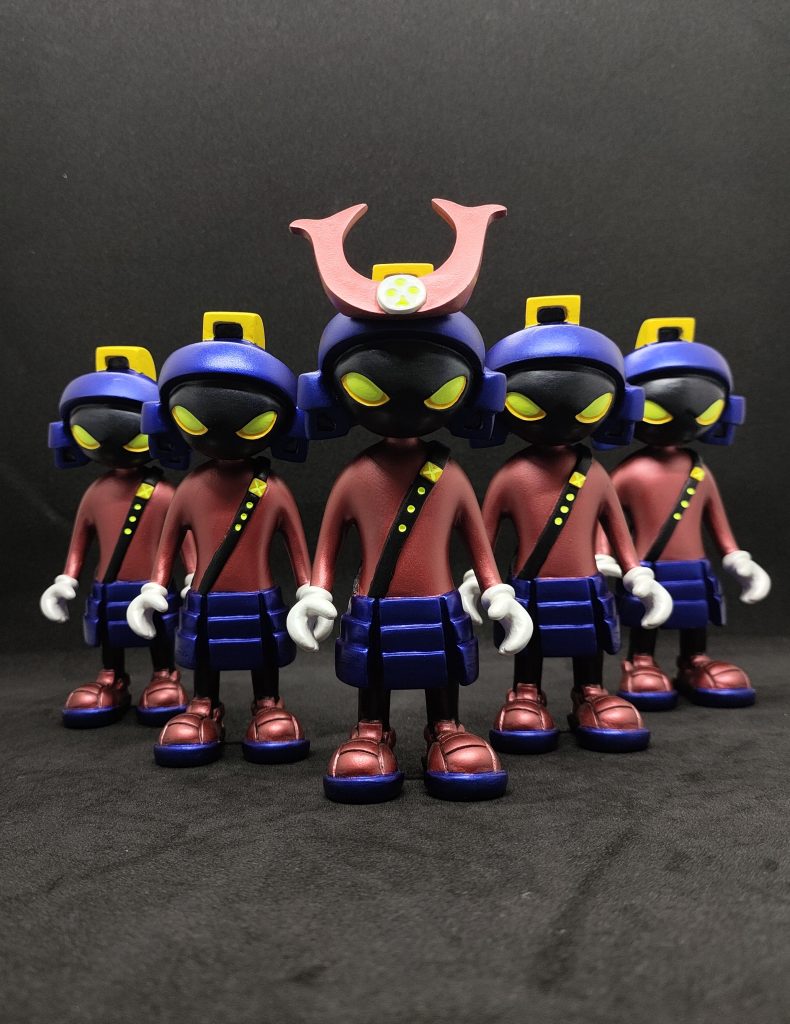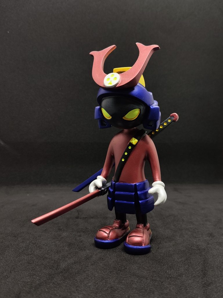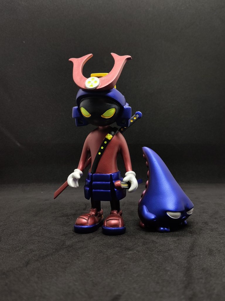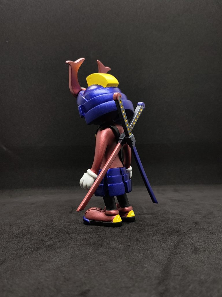 Stan is in combat mode when its maedate is attached and normal mode when not. maedate is a crest for decorative fitting mounted in front of the helmet and detachable by magnets. The base figure is a resin copy from the hand sculpted figure of the artist, while the weapon is digitally sculpted.This edition of stan features stan emenel