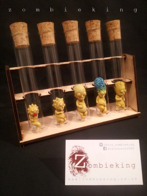 Almost 2 years since we’ve written about UK’s Zombieking. Ever since we discovered Zombieking work back in February 2015, we knew Zombieking had the demand for more of his totally crazy and pretty unique work. The UK-based artist has taken his Test-Tube series and given it a new extreme twist and it works so well. Chris’s love for absurd foetal specimens had uncovered some embryonic samples from the “Tree House of Horrors” exhibition at constellations gallery, Liverpool back in 2016 and he’s put them online for you to buy this week!