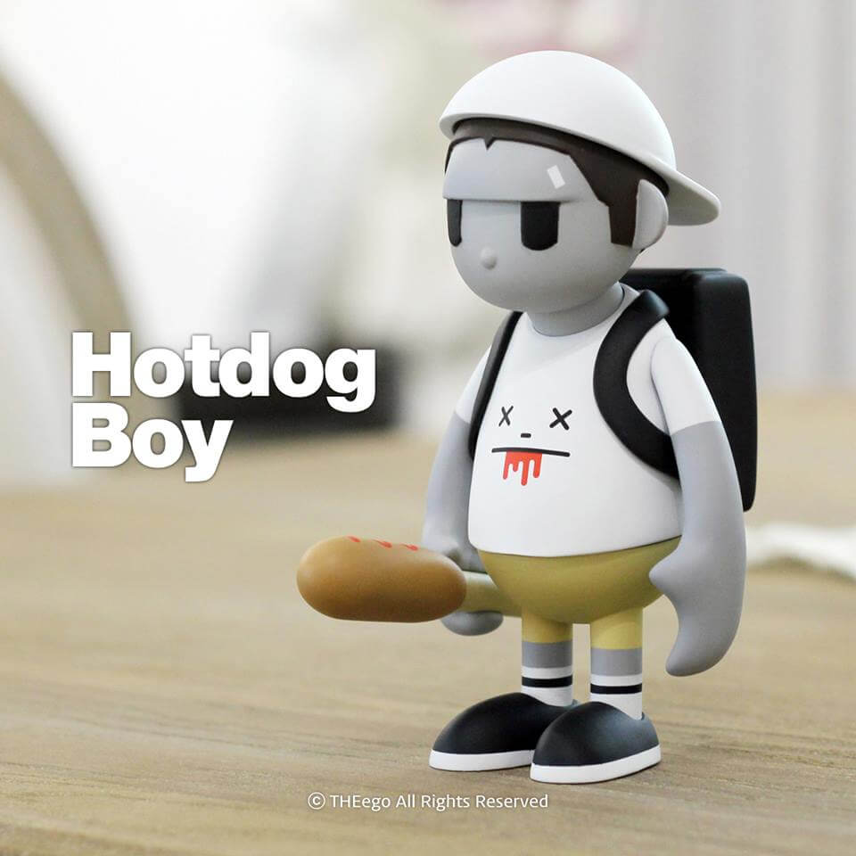 Back in January DAEIL LEE the South Korean behind THEego character, finally set his THEego up for pre-order. This resin figure has morphed into many variants over the past year, made debuts at character licencing fairs and Kidult expo up and down South Korea. The one that really caught our eye is the OG THEego the classic all white and AKIRA version! The Astro Boy inspired is impressive too. Nice use of THEego frame. Roll on to TODAY and Daeil Lee presents to you the latest version of THEego! Meet Solderboy and Hotdog boy beating bullies from around world.