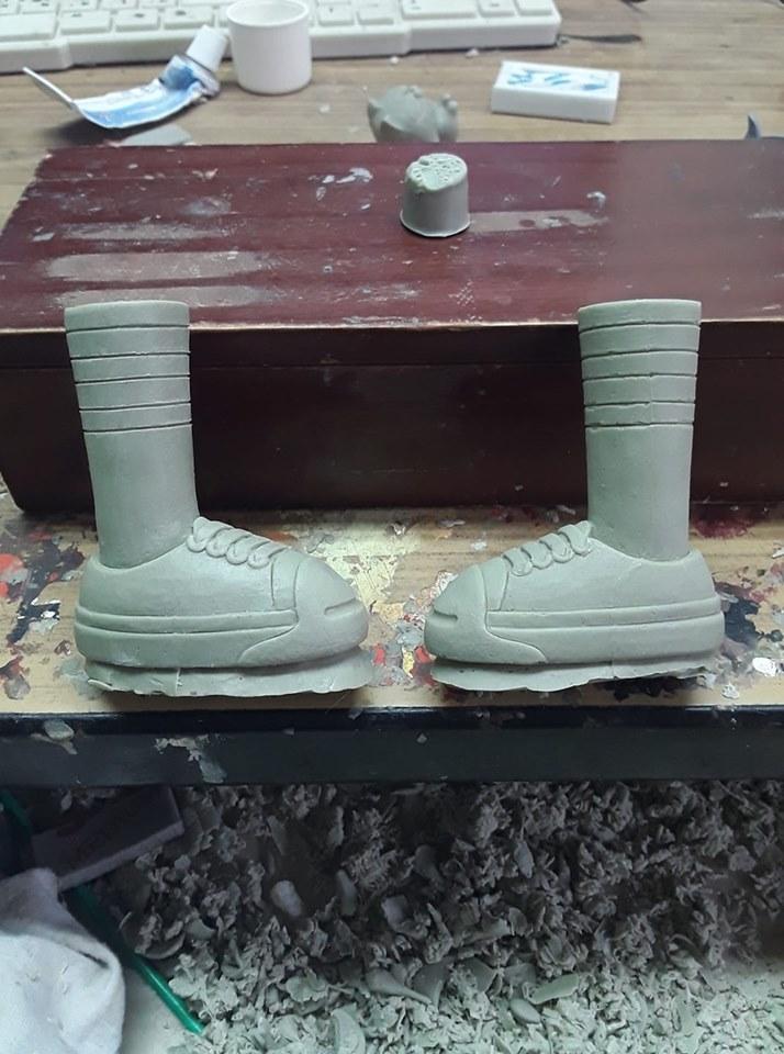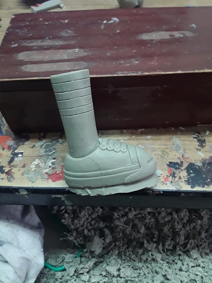 So I bring an original shoe that I’m done with it and copy it with a Silicone mold process with a rough detail first and cast it with “Castilene Wax” and just do a cleaning and detailing job with it and it’s done you have another look-alike shoes without a pain of sculpting it from the scratch